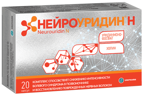 Компоненты Нейроуридин® Н способствуют снижению интенсивности болевого синдрома, в т.ч. в области шейного, грудного и поясничного отдела позвоночника, и восстановлению поврежденных нервных волокон.