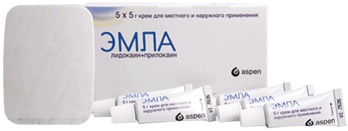 | При введении иглы, например при катетеризации сосудов и взятии проб крови | Половина 5 г тюбика (примерно 2 г) /10 см2 нанести толстым слоем на кожу и покрыть окклюзионной повязкой | 1 ч, максимум — 5 ч |