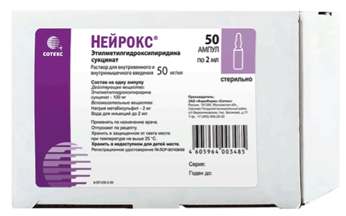 При дисциркуляторной энцефалопатии в фазе декомпенсации Нейрокс® следует назначать в/в струйно или капельно в дозе 200–500 мг 1–2 раза в сутки в течение 14 дней. Затем — в/м по 100–250 мг/сут в течение последующих 2 нед.