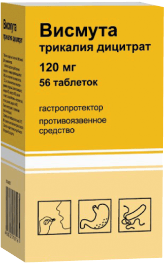 Висмута трикалия дицитрат таб. п.п.о. 120мг №56