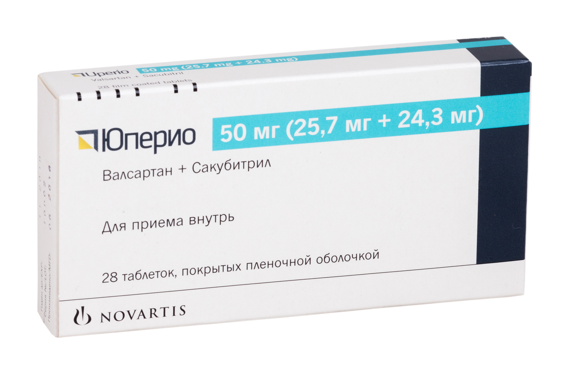 Всасывание. После приема внутрь комплекс сакубитрила и валсартана распадается на сакубитрил, который затем метаболизируется с образованием метаболита — сакубитрилата, и валсартан. Концентрации названных веществ в плазме крови достигают максимума через 0,5, 2 и 1,5 ч соответственно. Абсолютная биодоступность сакубитрила и валсартана после приема внутрь составляет ≥60 и 23% соответственно. Валсартан в составе препарата Юперио обладает большей биодоступностью по сравнению с другими таблетированными формами.
