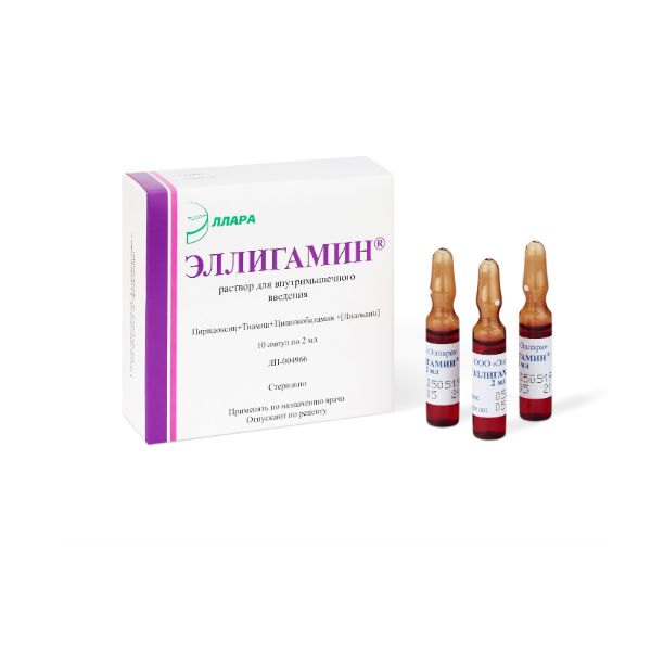 Препарат ЭЛЛИГАМИН® содержит 40 мг бензилового спирта в 2 мл раствора для инъекций (1 ампула). Бензиловый спирт может вызвать аллергическую реакцию. Бензиловый спирт связан с риском развития тяжелых нежелательных реакций, включая проблемы с дыханием (так называемый «синдром удушья») у маленьких детей. Минимальное количество бензилового спирта, при котором может возникнуть токсичность, неизвестно. Большие объемы следует использовать с осторожностью и только при необходимости, особенно у людей с нарушением функции печени или почек, а также во время беременности и кормления грудью из-за риска накопления и токсичности (метаболический ацидоз).