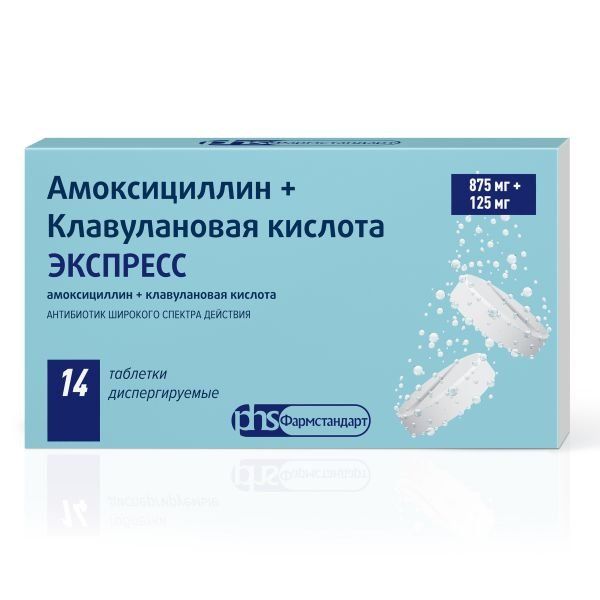 Амоксициллин+клавулановая кислота экспресс таб. дисперг. 875мг+125мг №14