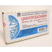 Цианокобаламин (вит В12) р-р д/ин. 0,5мг/мл 1мл №10