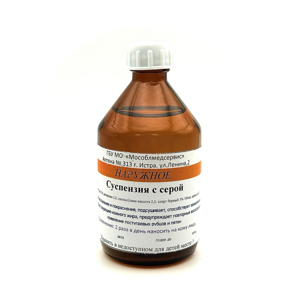 Сера 5.0, резорцин 2.0, салициловая кислота 2.0, спирт борный 3% – 100 мл, крахмал 0.1.