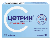 Цетрин таб. п.п.о. 10мг №20